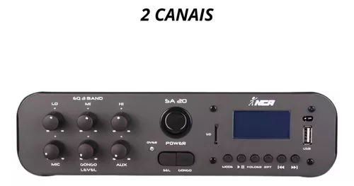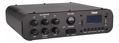 Equipado com tecnologia Bluetooth, rádio FM, USB e SD Card, o SA20 oferece diversas opções de conectividade para garantir que sua música e anúncios sejam transmitidos de maneira versátil. Seu display LCD facilita a navegação pelas funções, e o controle remoto permite ajustes rápidos à distância, proporcionando uma experiência completa e funcional.